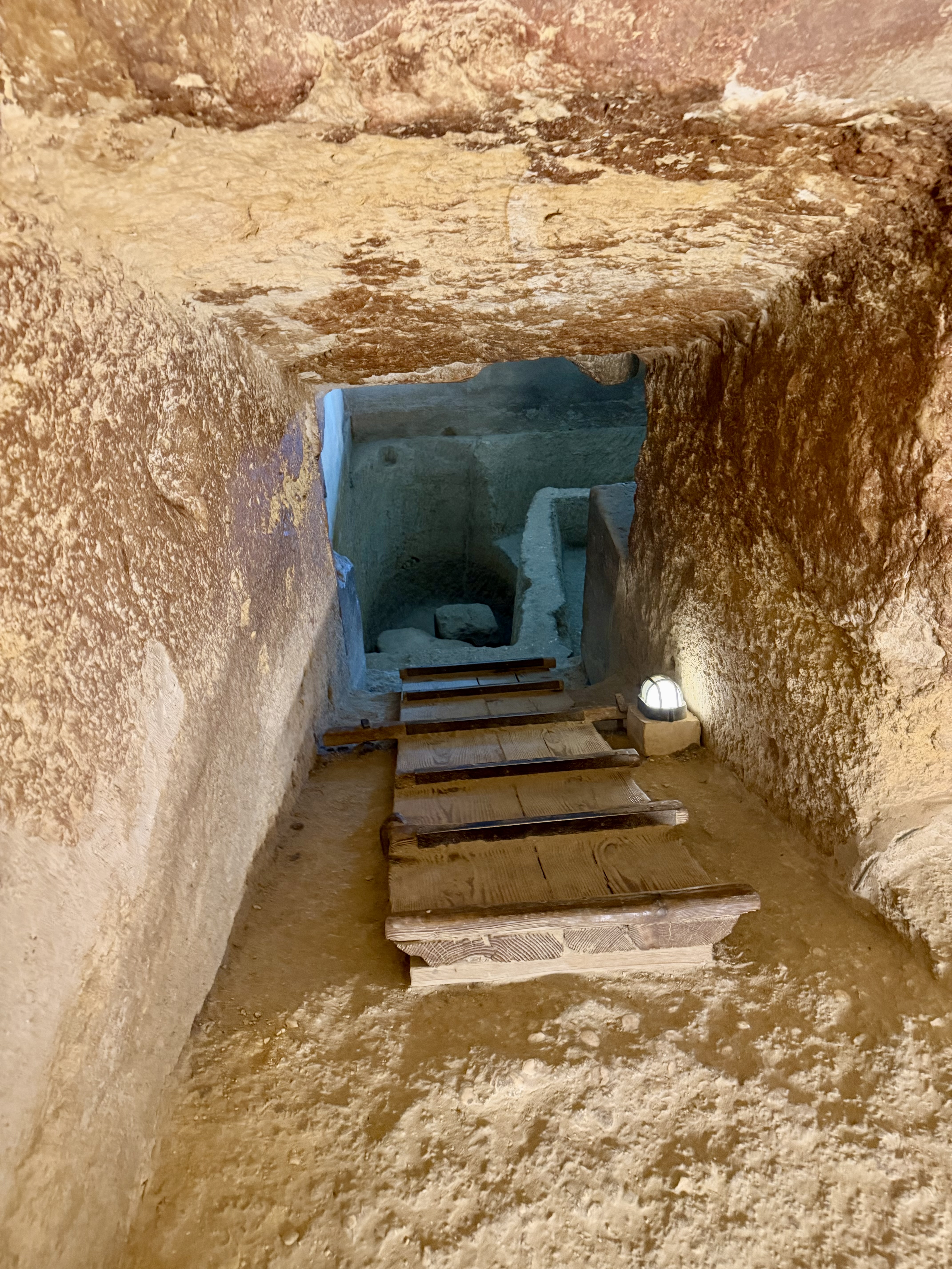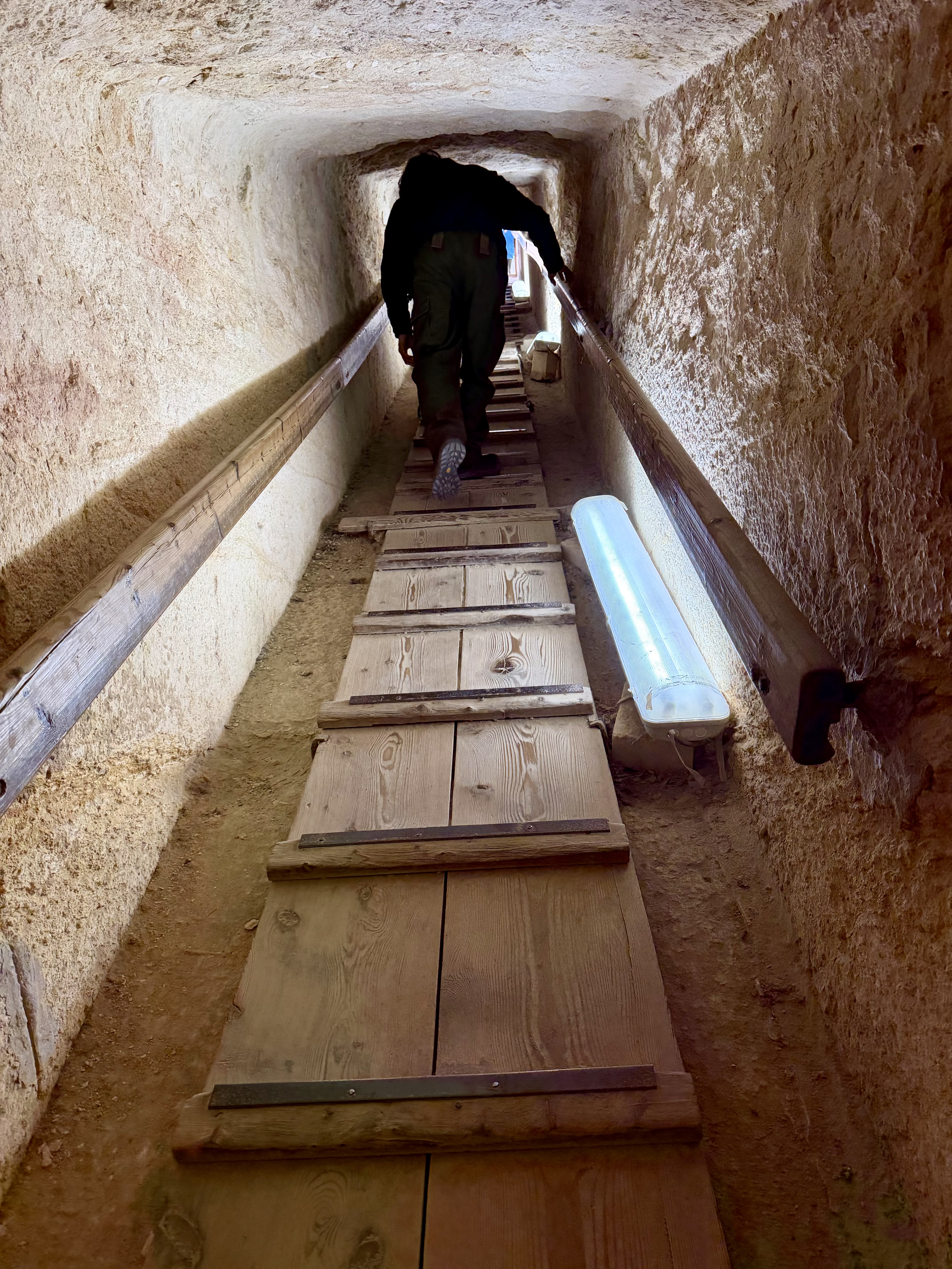 The tunnel quickly narrowed. Despite being only 5 foot 4, I had to bend forward immediately. My husband wisely remained outside, refusing to test his claustrophobia.