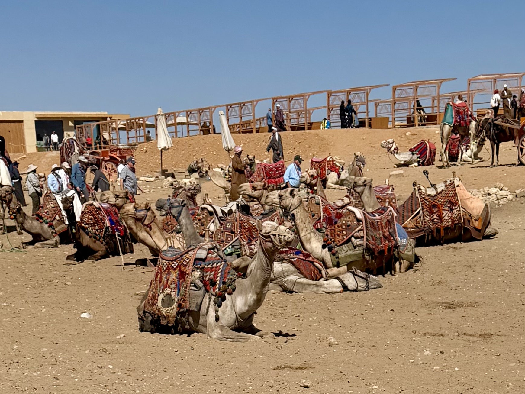On the desert plateau, men in galabeyas and keffiyehs waited beside camels. Fires burned softly while tea was shared nearby.