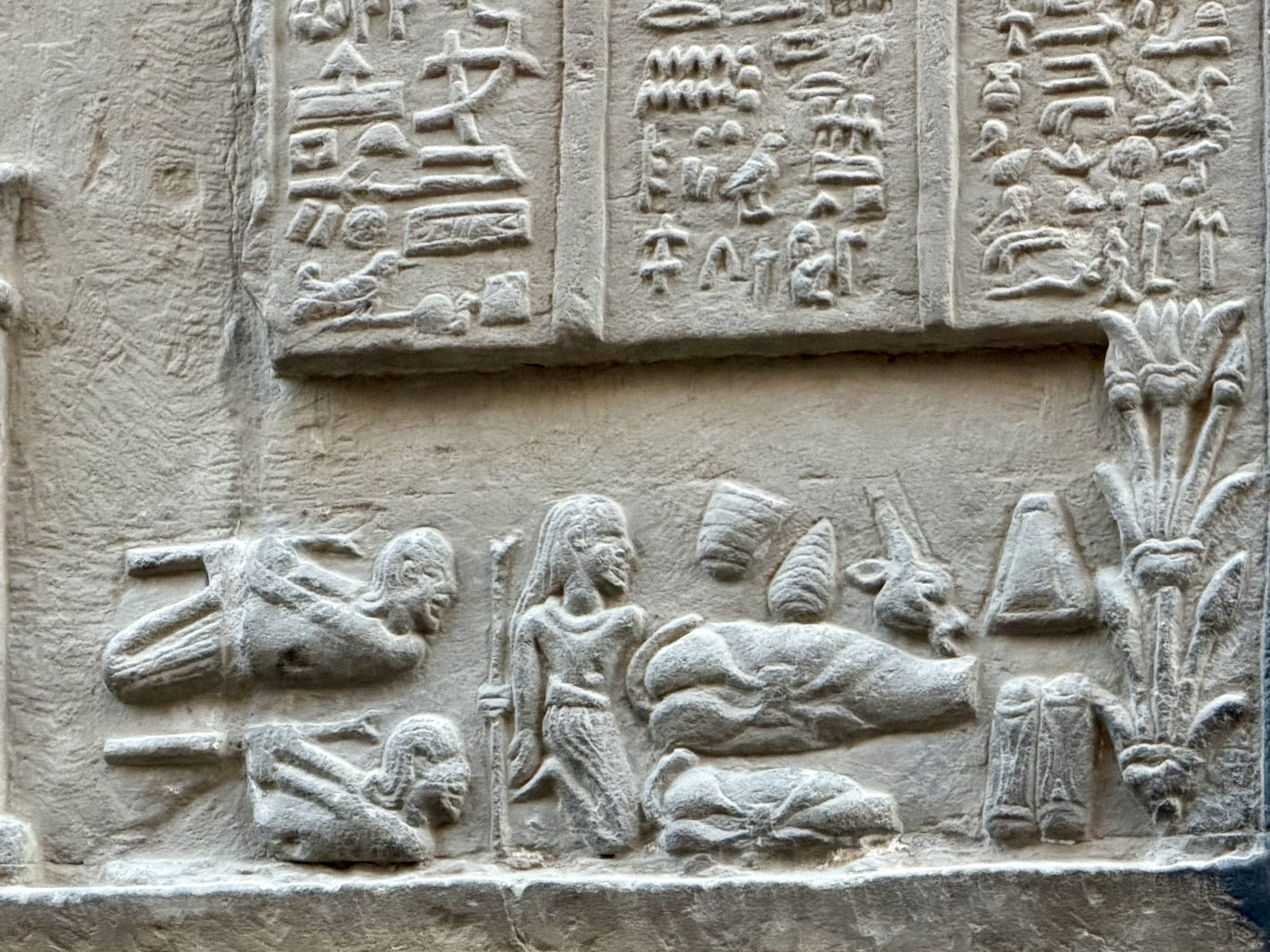 At first glance it appears to depict a hunting scene, but Alaa explained its deeper meaning. The hippopotamus symbolized chaos and destructive forces threatening balance in the world. Horus striking it represented the triumph of order over disorder, stability over danger.