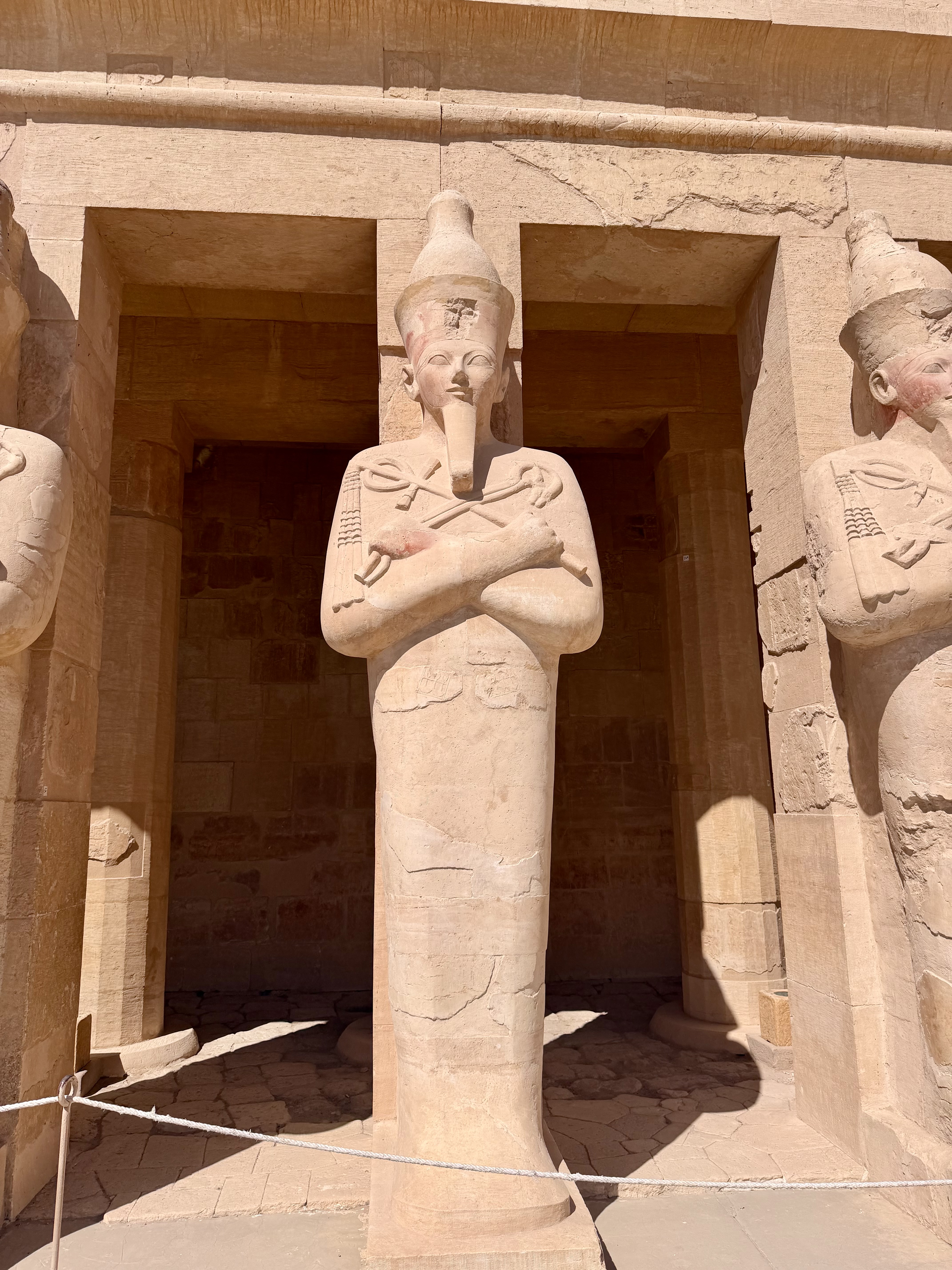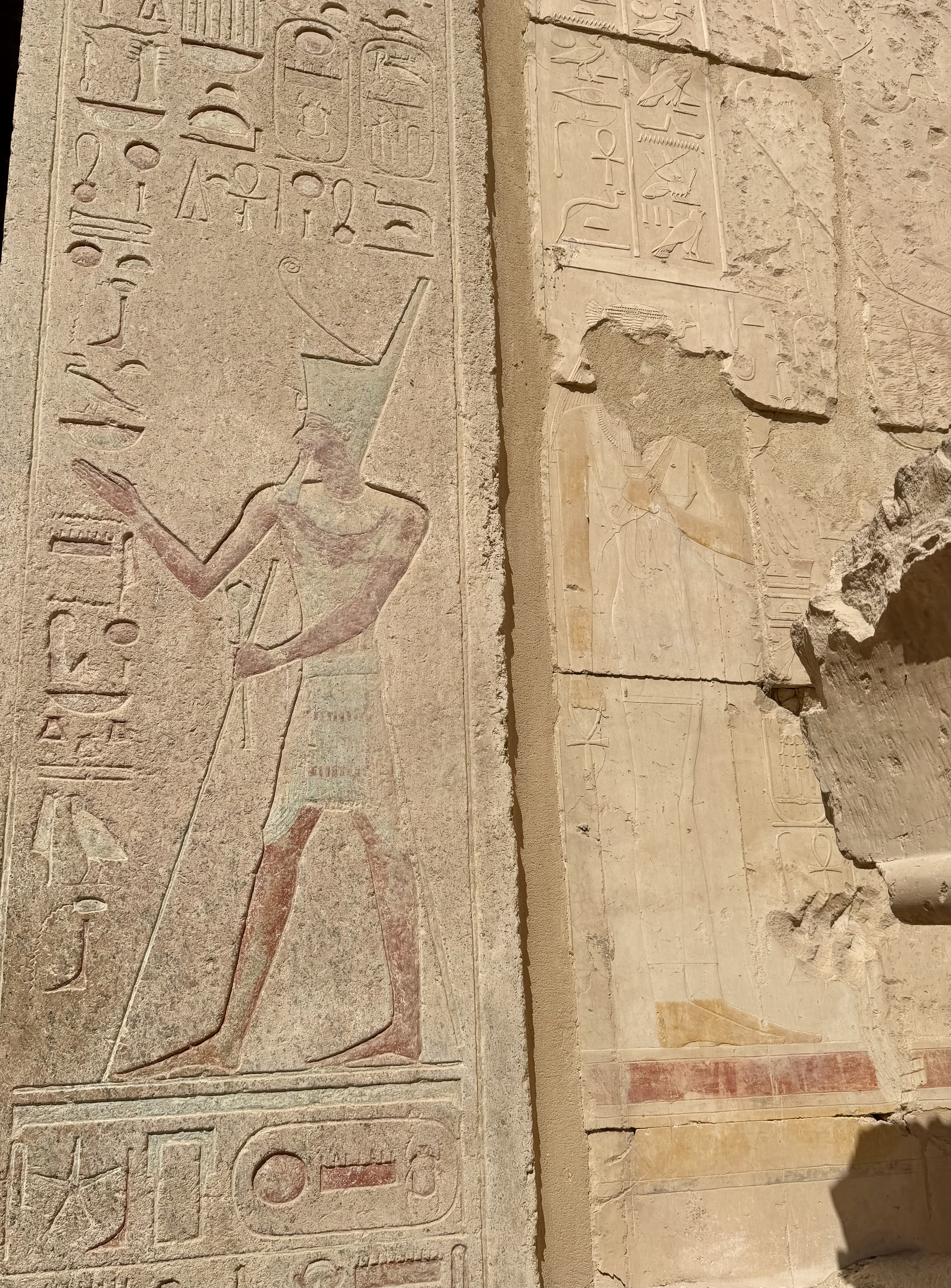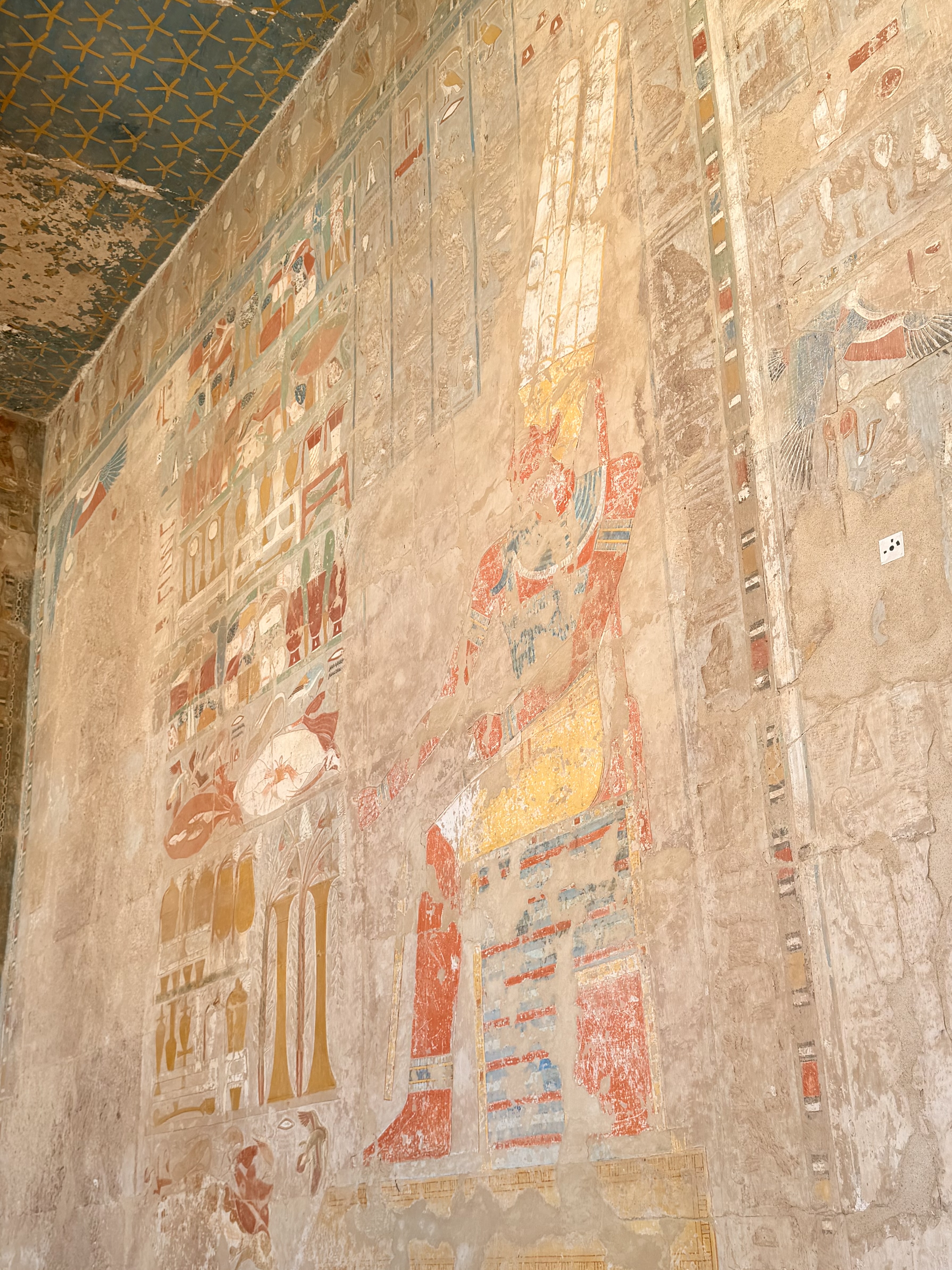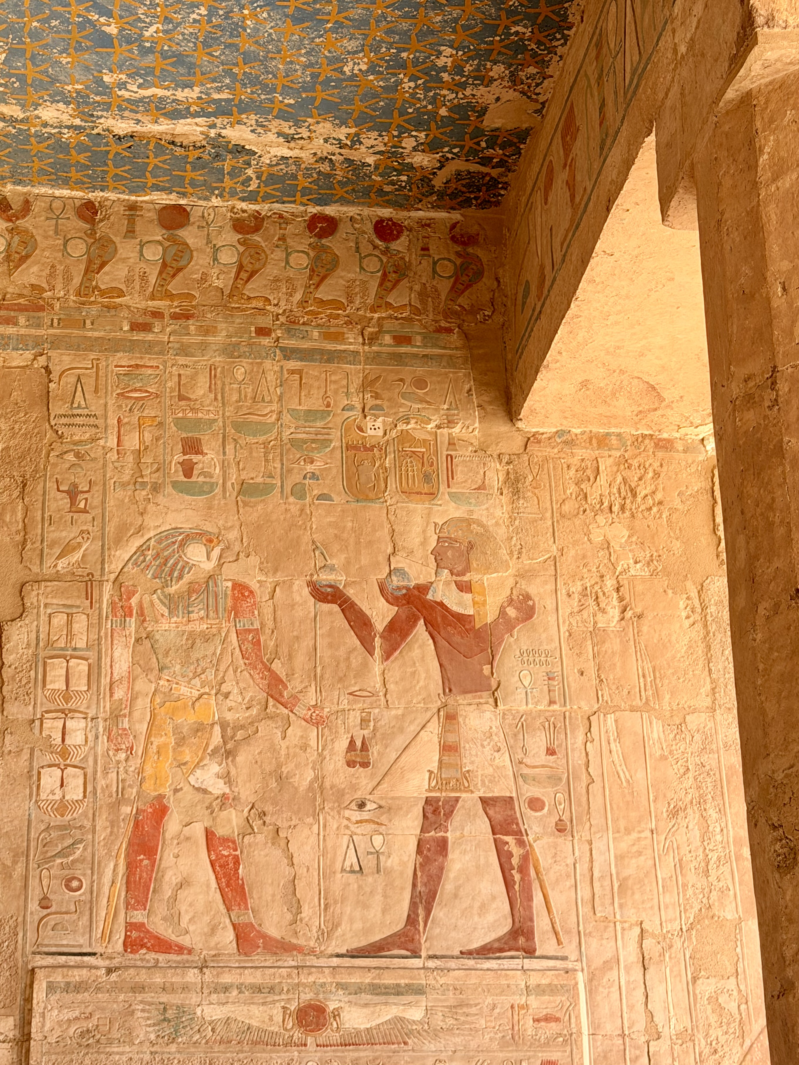 Walking through the terraces felt open and balanced after the enclosed tombs. Sunlight flooded the courtyards while relief carvings told stories of divine birth and successful expeditions.