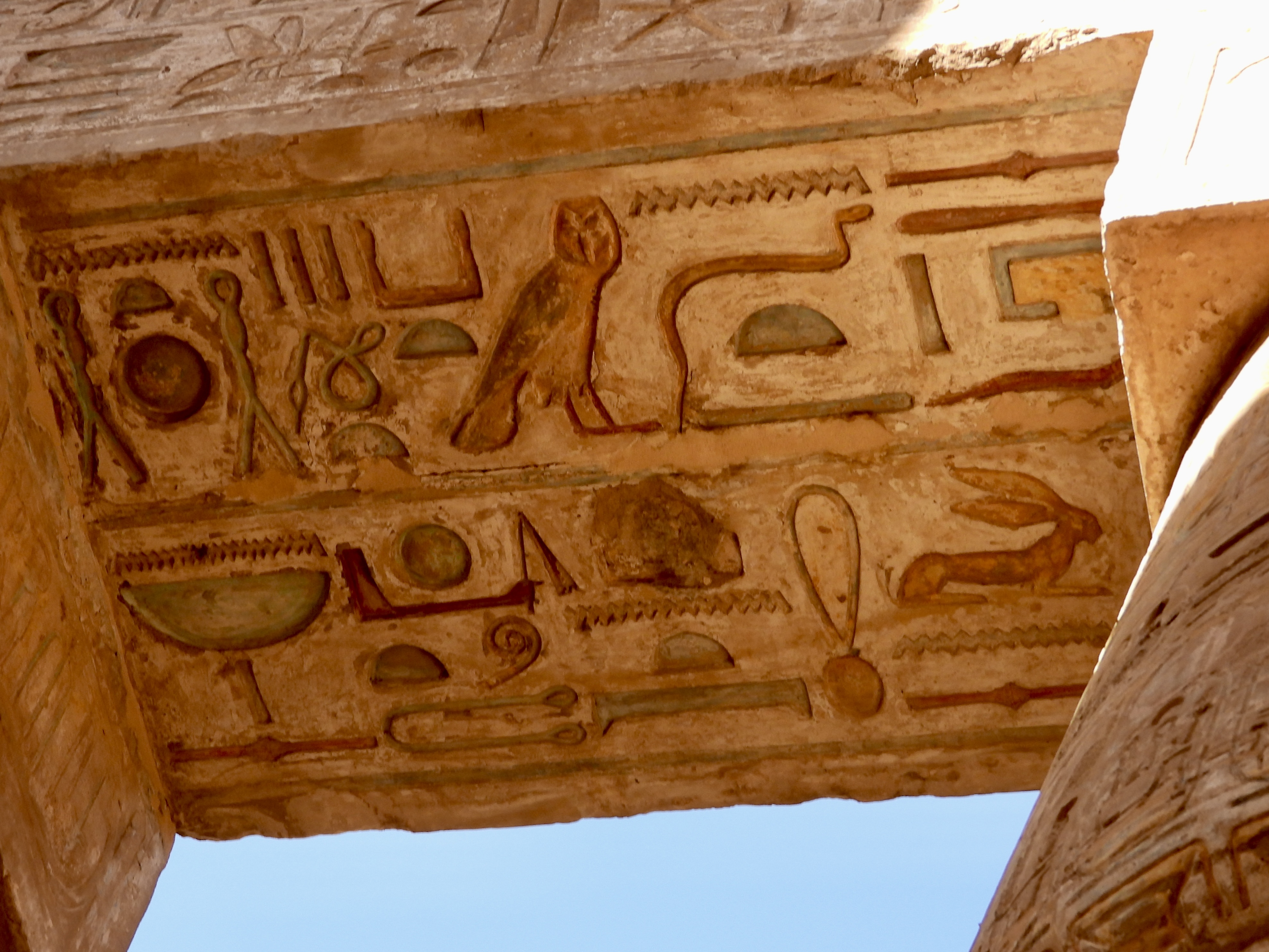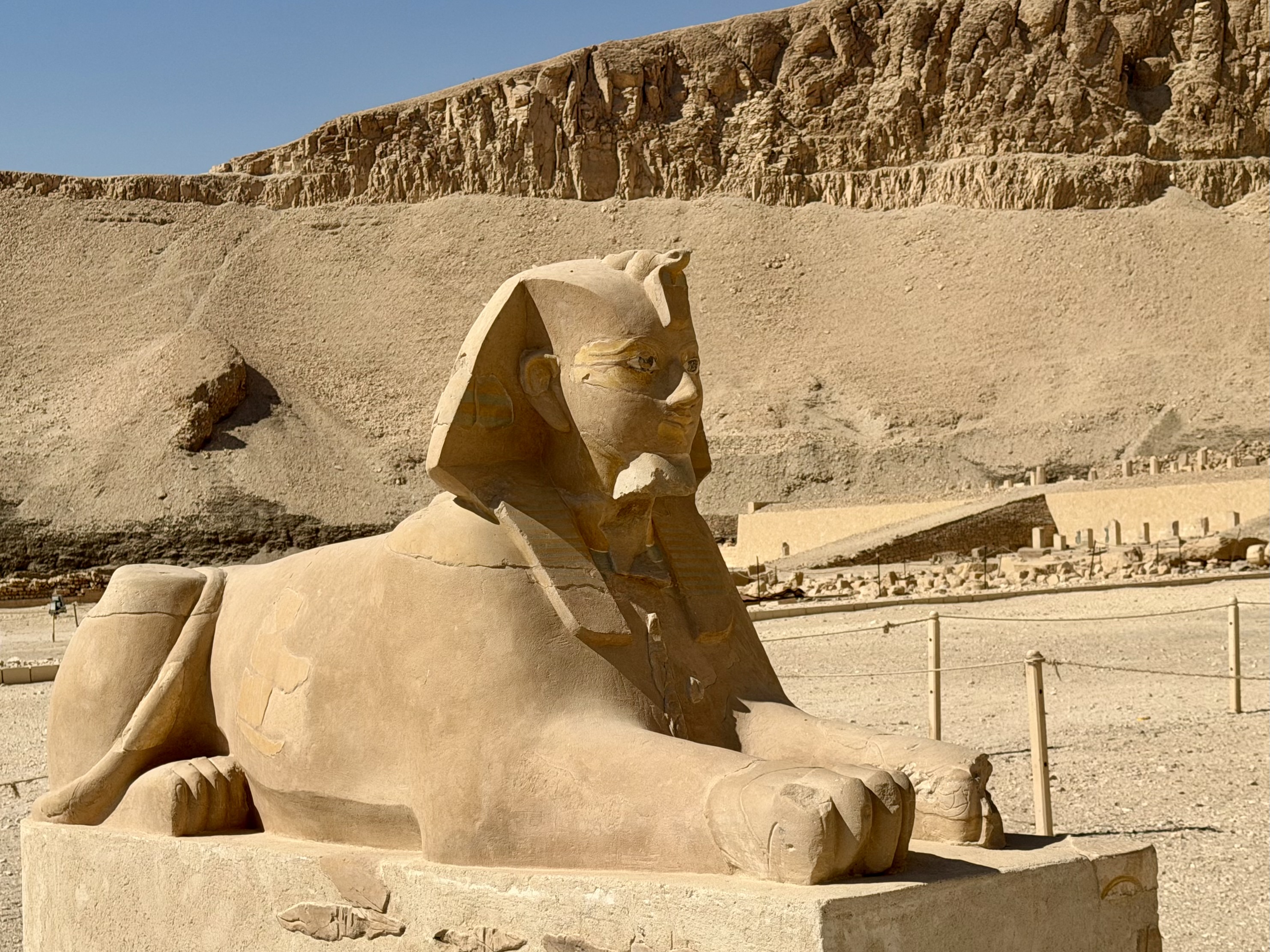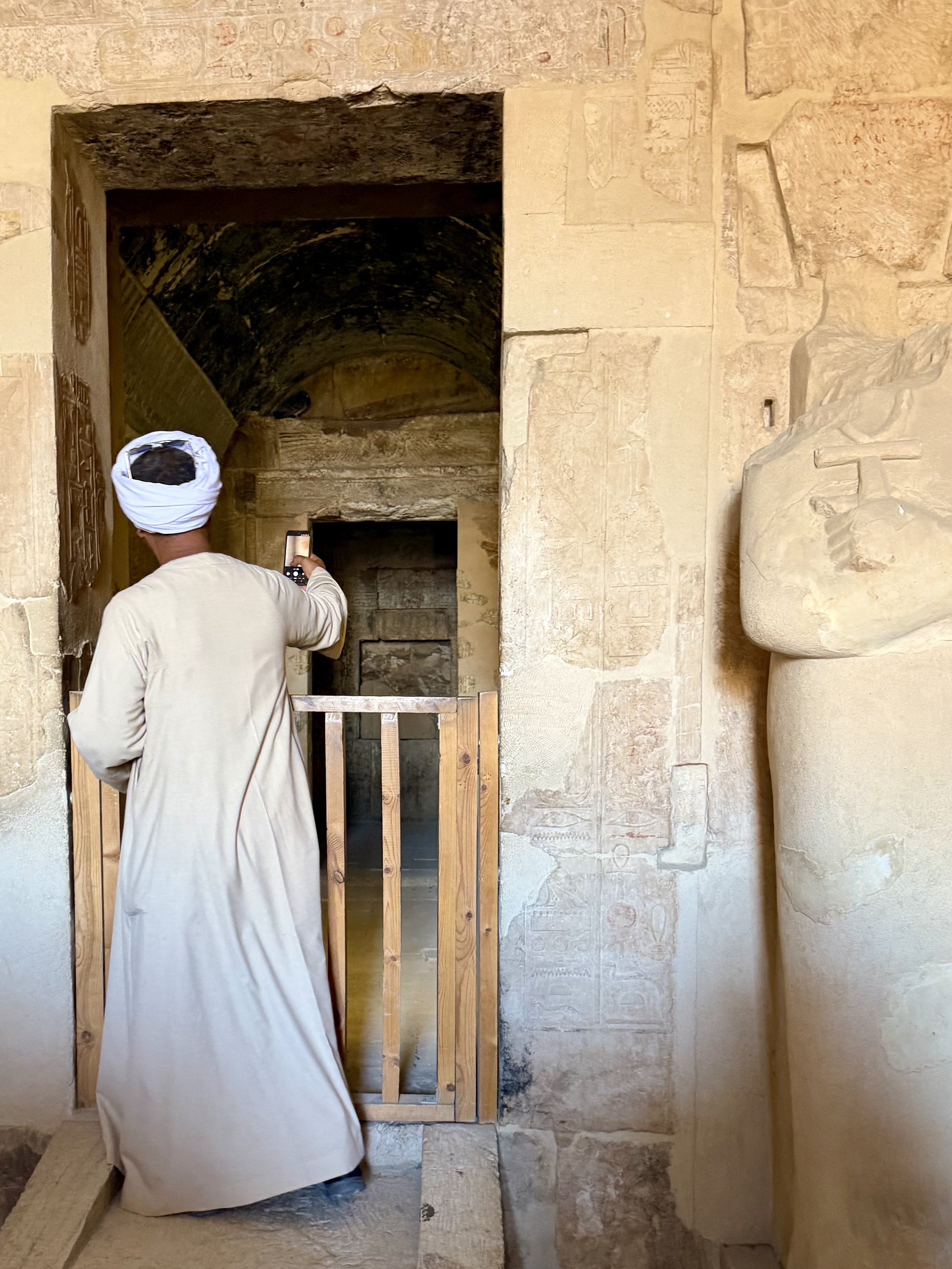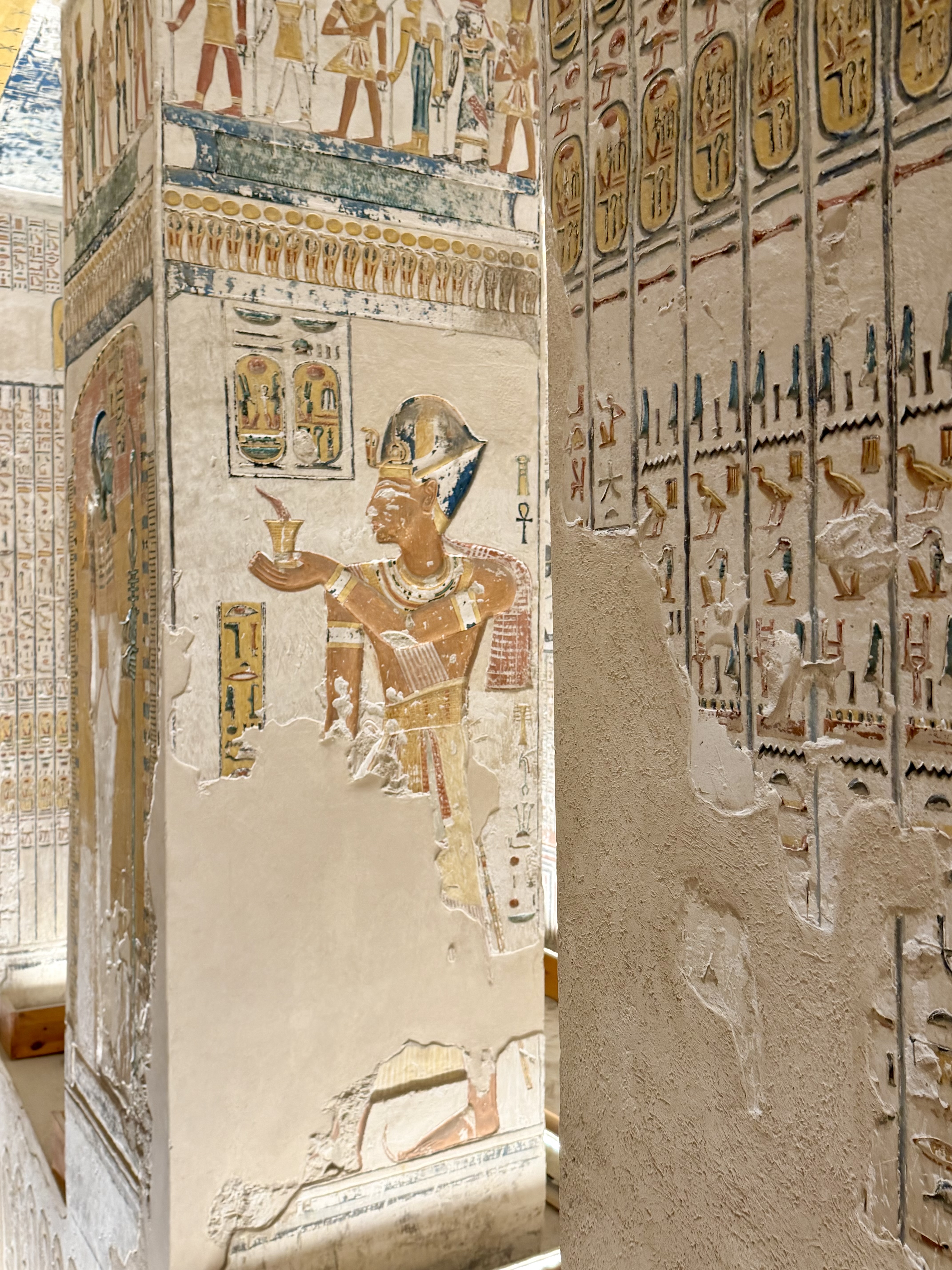 Walking through the terraces felt open and balanced after the enclosed tombs. Sunlight flooded the courtyards while relief carvings told stories of divine birth and successful expeditions.