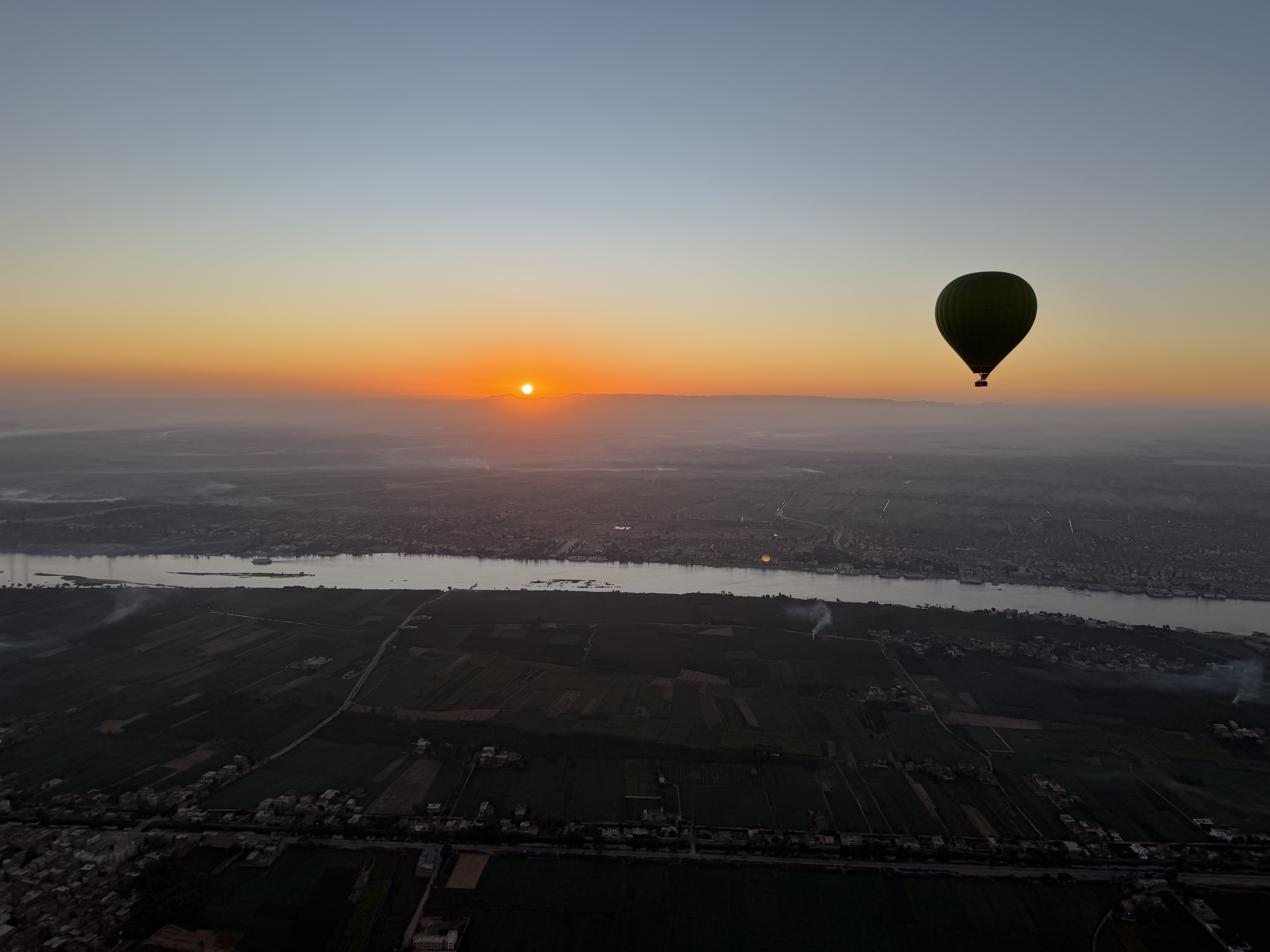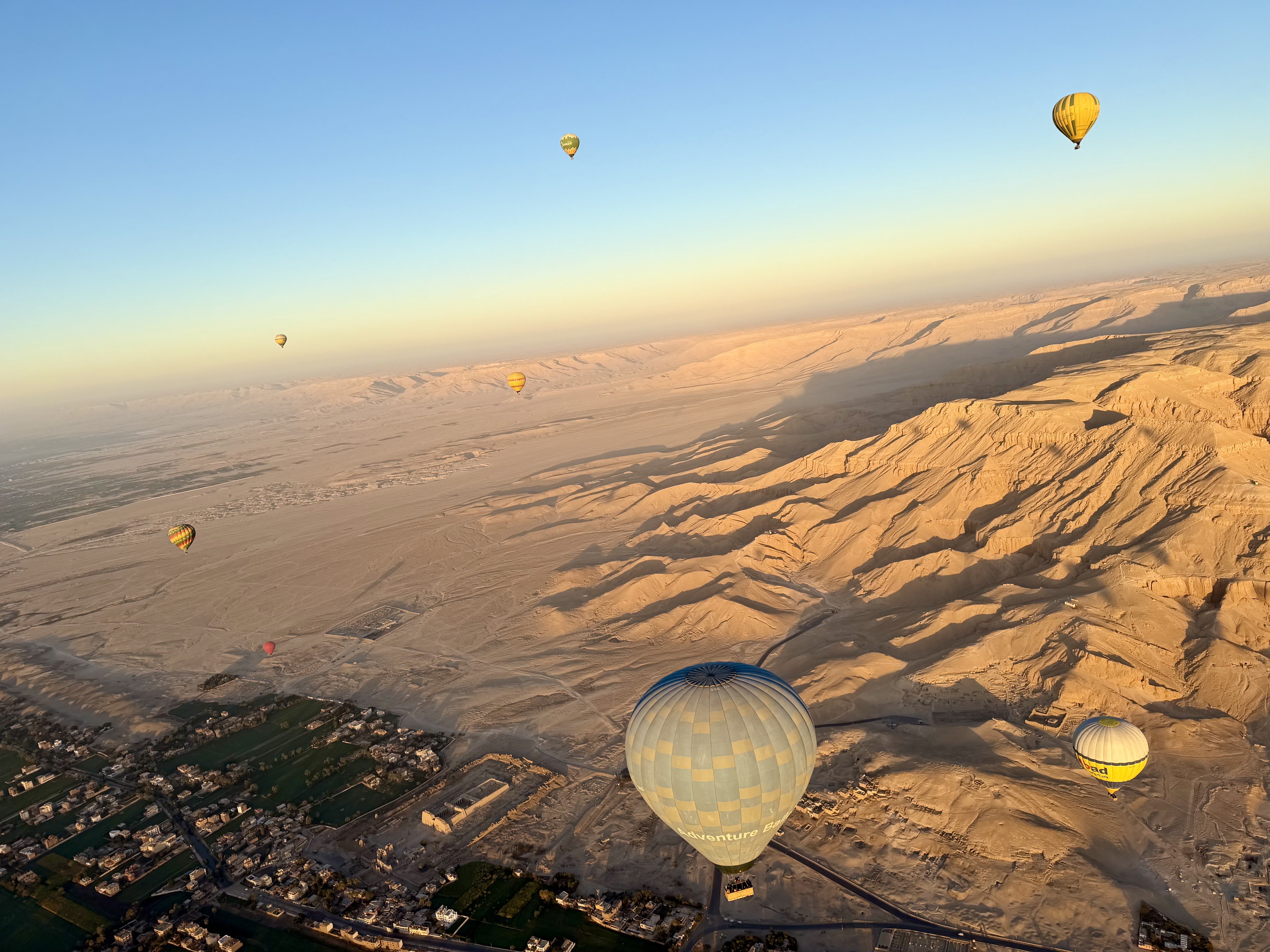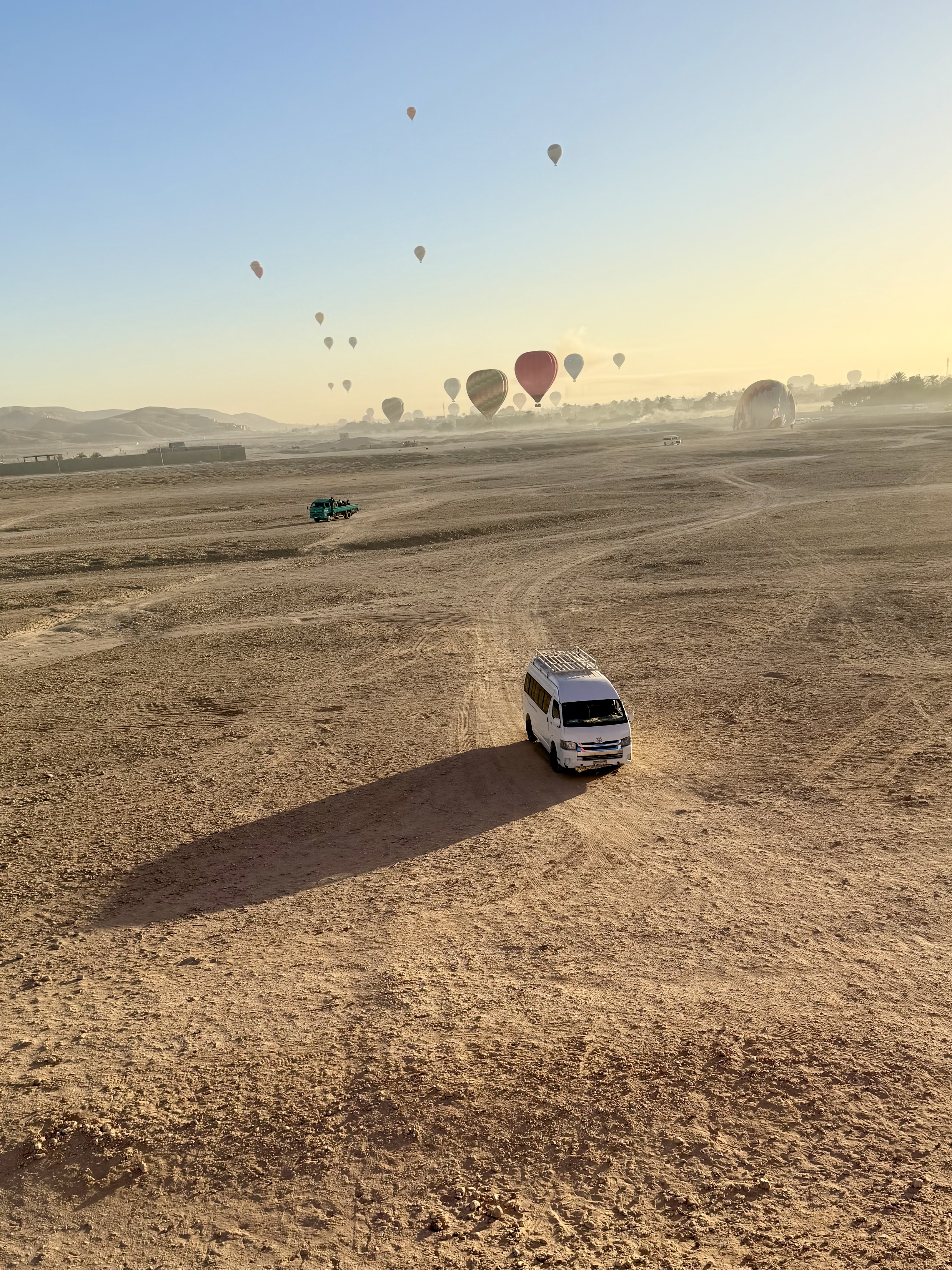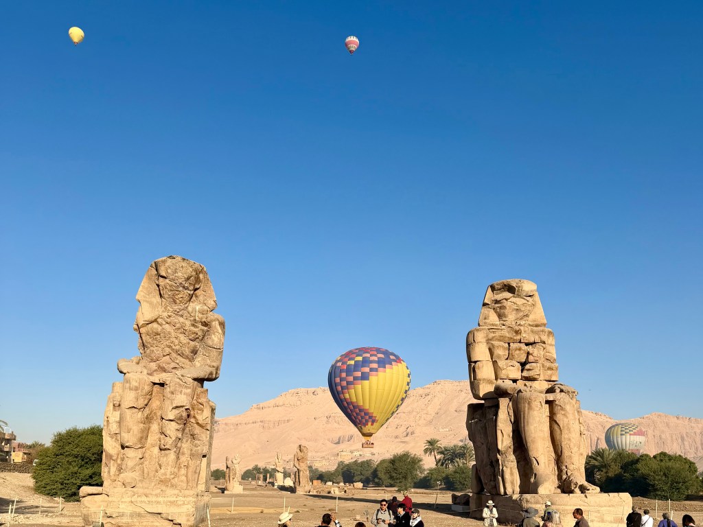 Our morning did not begin with breakfast or even an alarm clock. It began floating silently above ancient Egypt in a hot air balloon as the sun rose over the Nile and the desert mountains beyond. By the time our feet touched the ground again and we climbed into what our crew jokingly called the “Crazy Van,” we had already lived an entire experience before most people started their day.