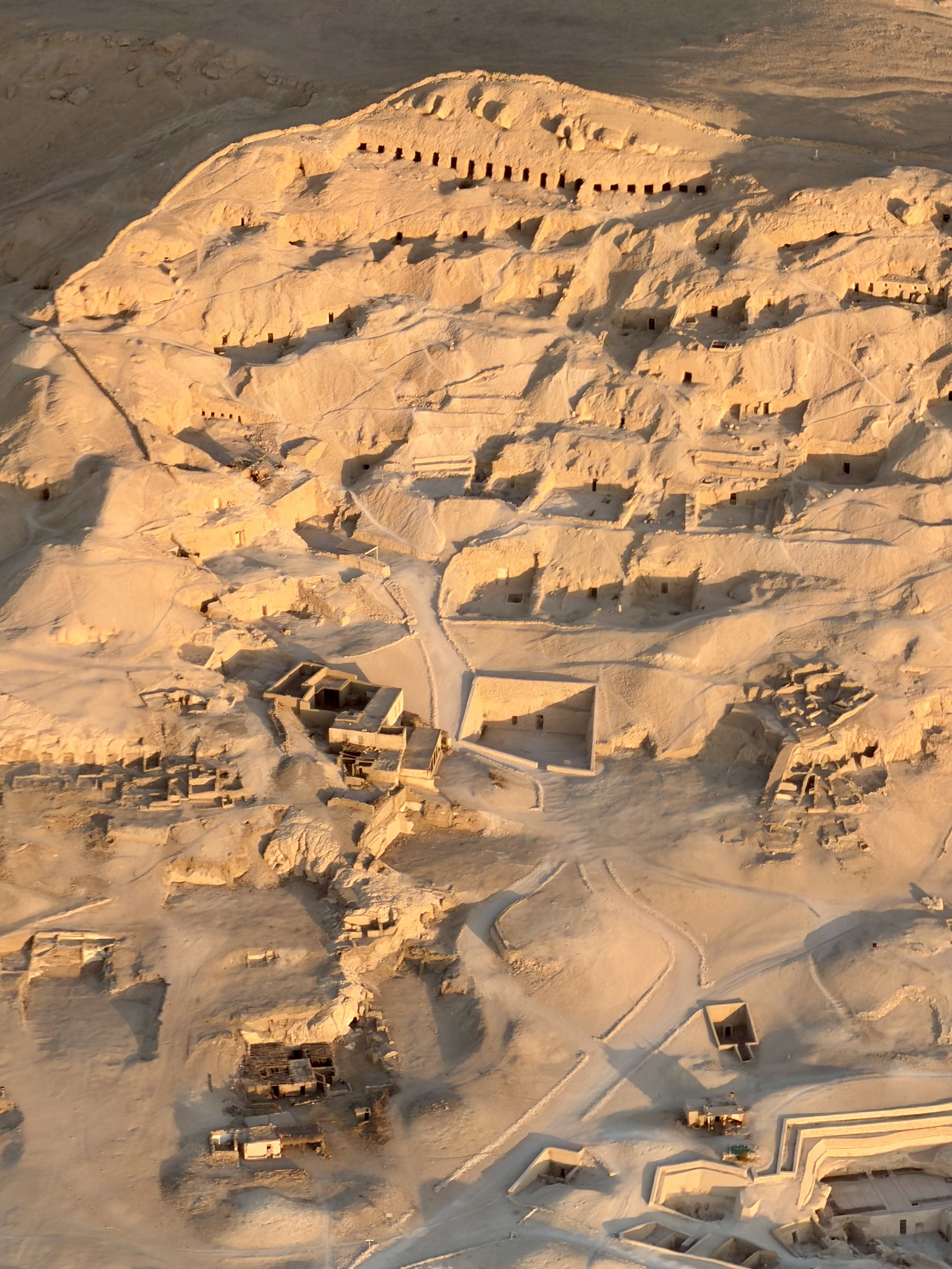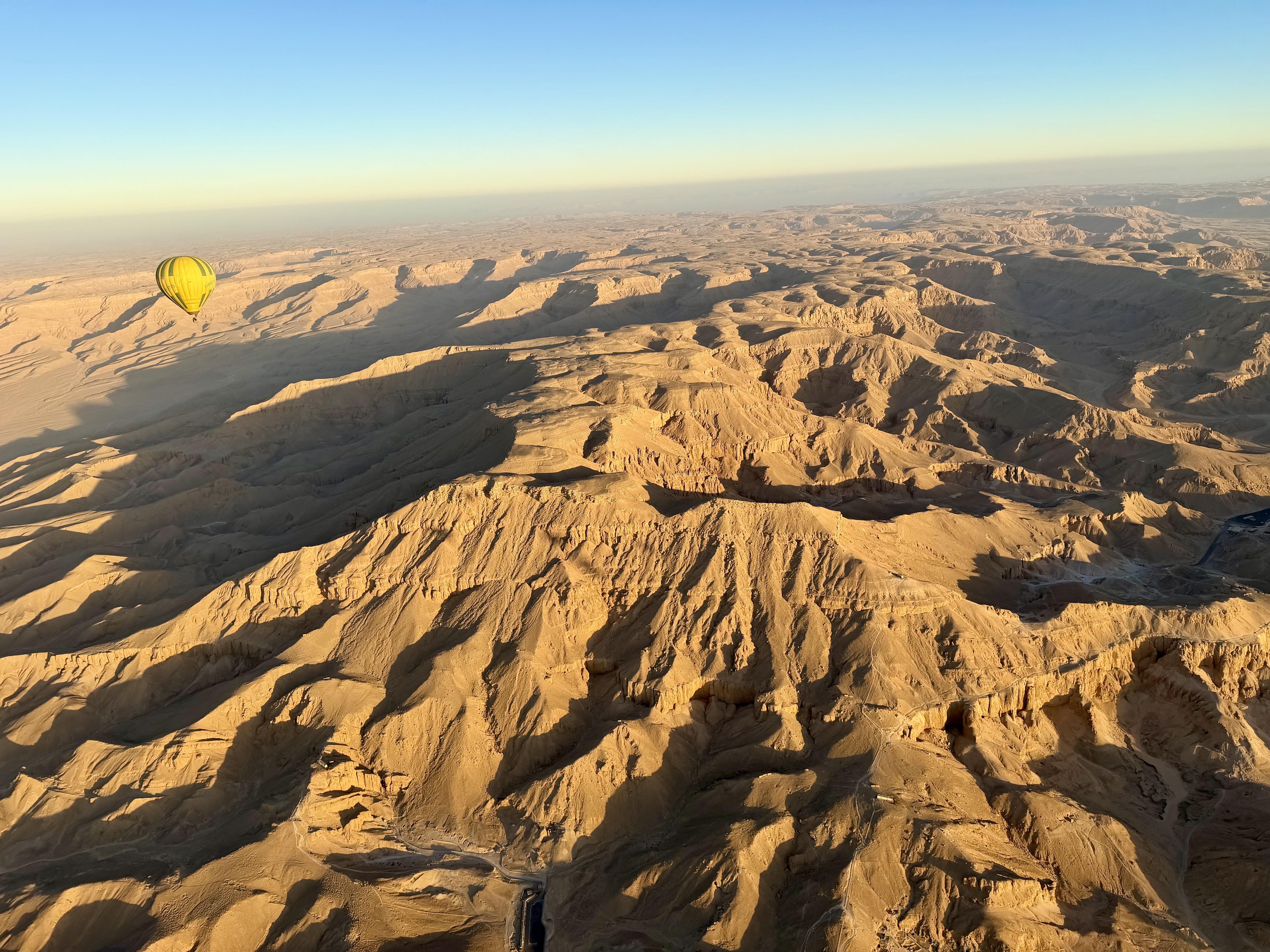 Below us stretched a landscape that felt ancient and untouched. Thin ribbons of vivid green farmland followed the Nile before abruptly ending where golden desert began. The contrast was stunning – life beside emptiness, fertility beside eternity – exactly why ancient Egyptians chose this western land as the realm of the dead.