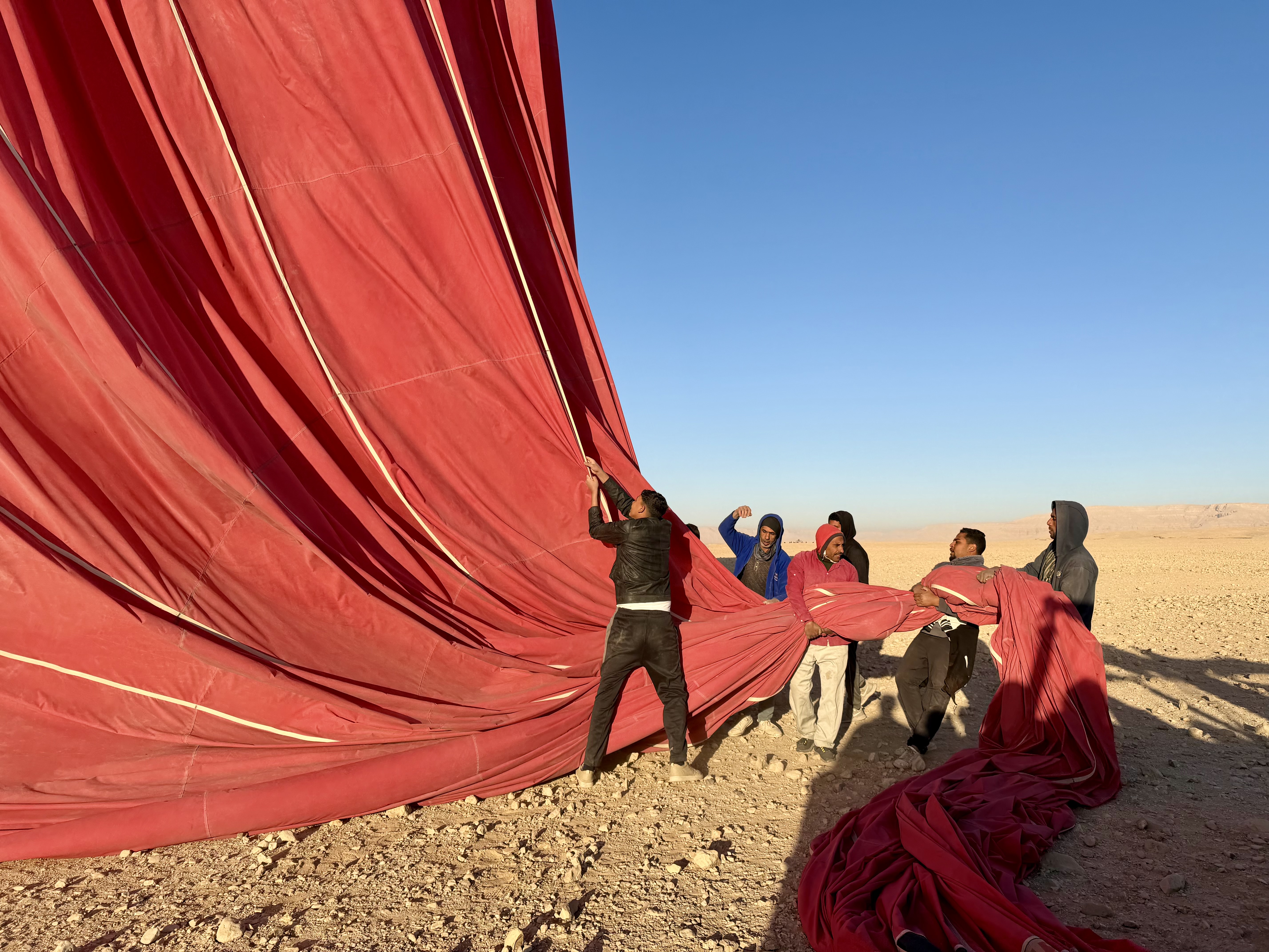 There was no dramatic lift, no sudden motion. One moment we were standing in the desert, the next we were floating above it.