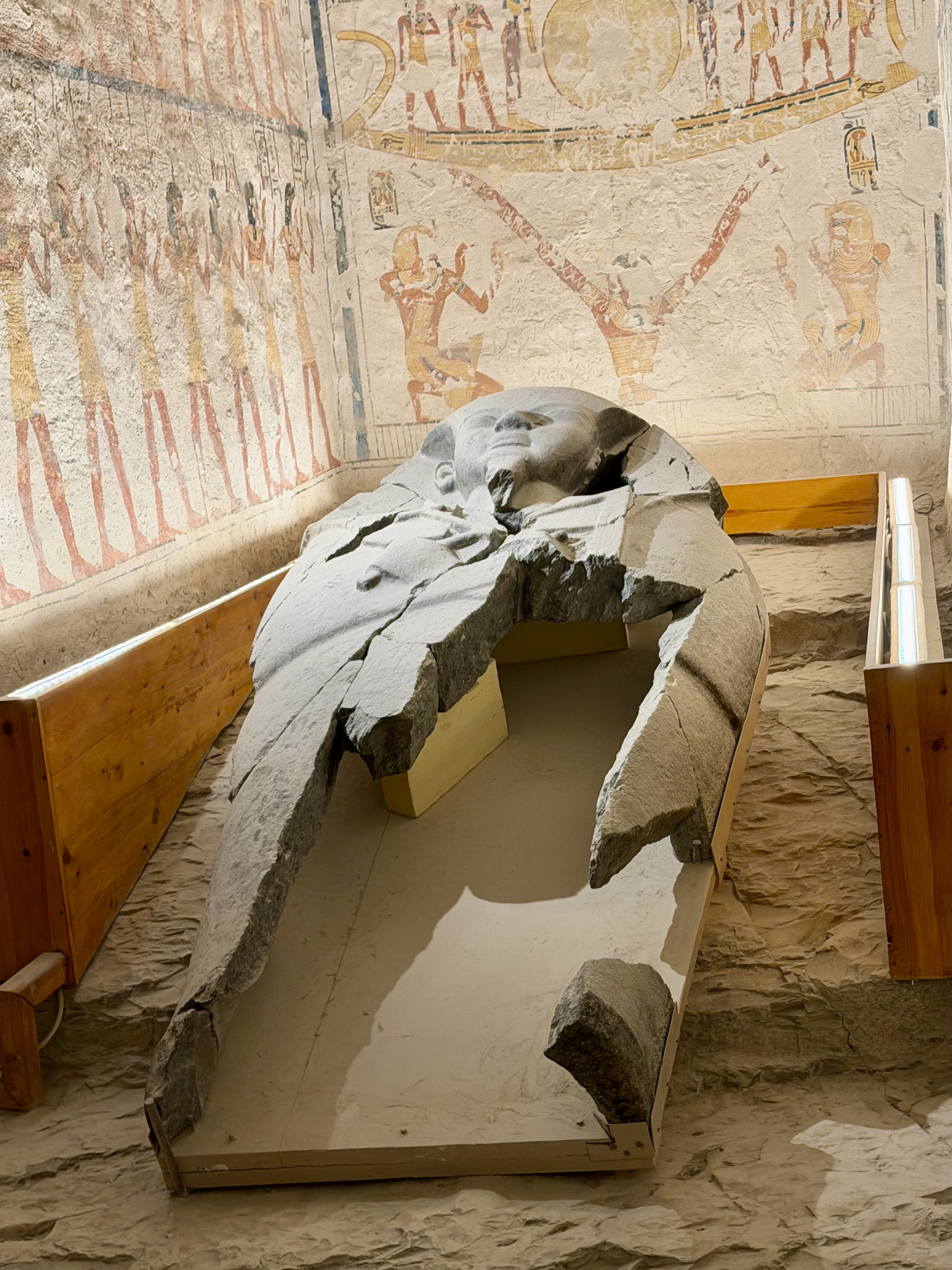Massive nested sarcophagi once protected the king here, layer upon layer intended to preserve eternity itself. The depth creates a powerful sense of descent both physically and spiritually.