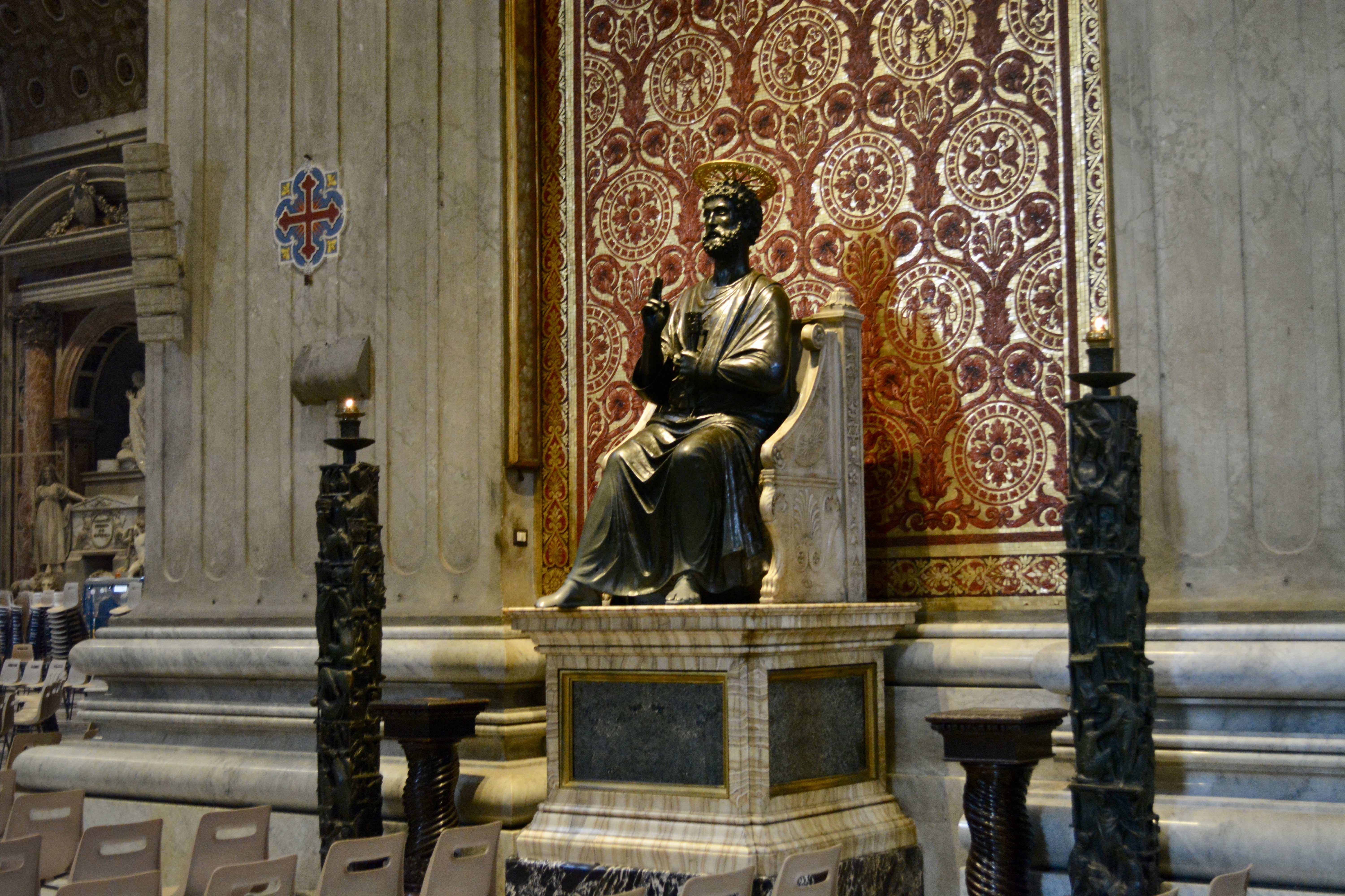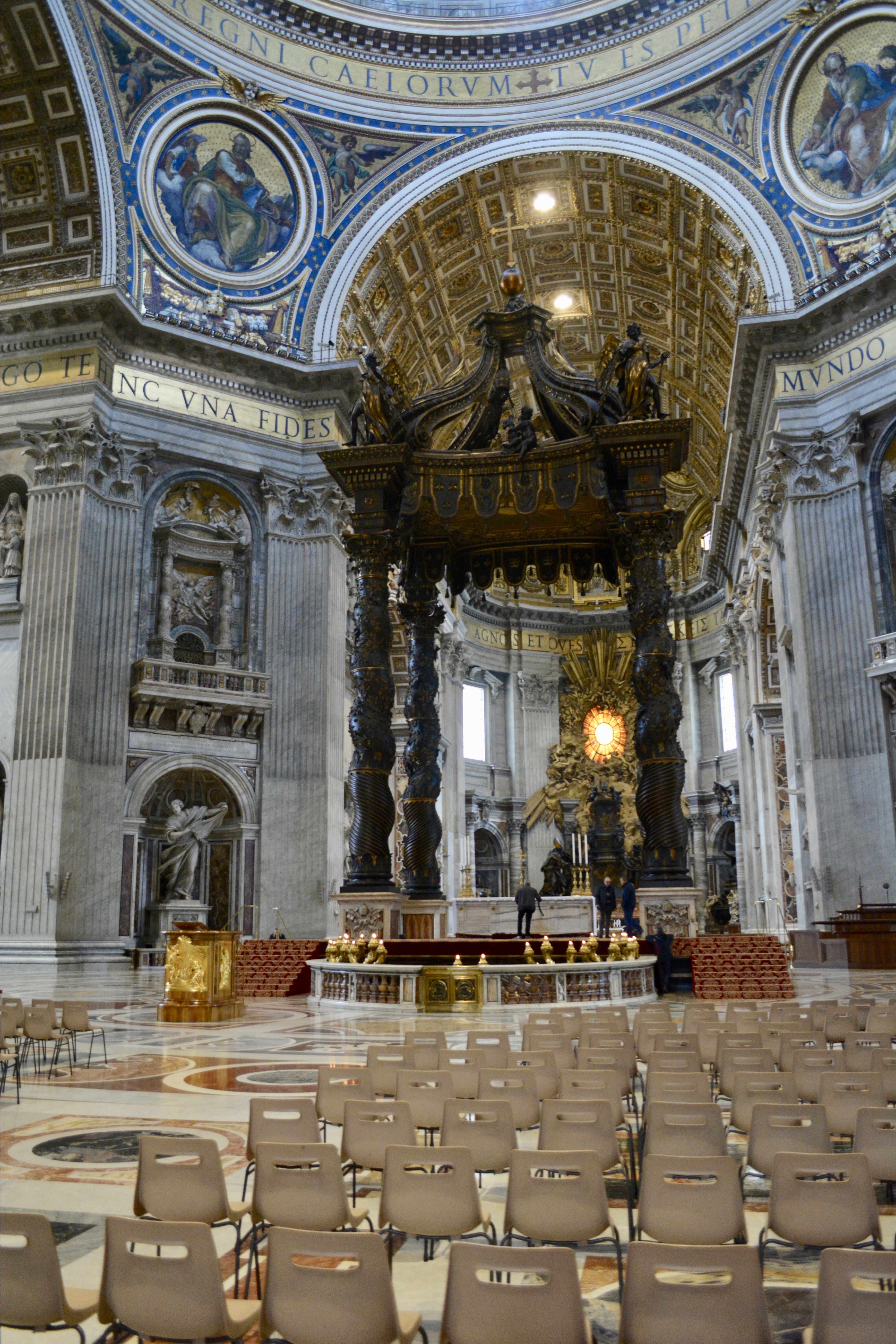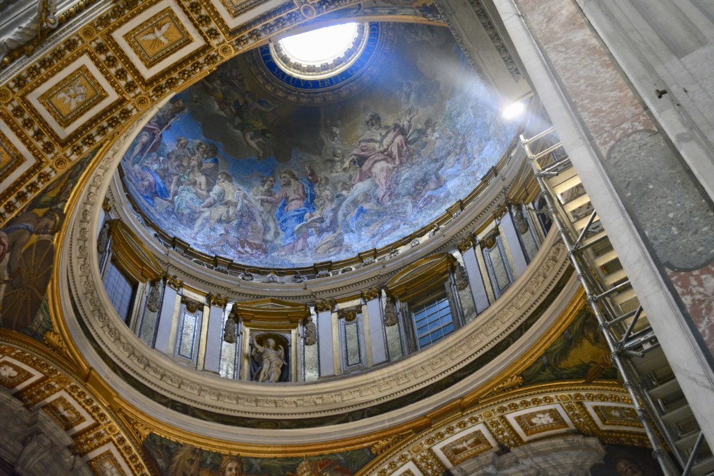 Walking into St. Peter’s Basilica, the scale alone takes your breath away. Every inch glows with golds, marbles, and mosaics that seem to move in the shifting light. Michelangelo’s Pietà rests quietly behind glass – the folds of Mary’s robe carved so delicately it looks like silk – while Bernini’s towering bronze canopy anchors the altar beneath the soaring dome.